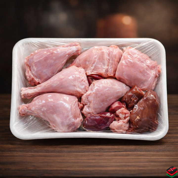 This pack includes edible organs — liver, heart, and kidneys — valued for their rich taste and nutritional benefits. The sealed tray packaging protects the meat during handling and storage, ensuring it reaches you in excellent condition.